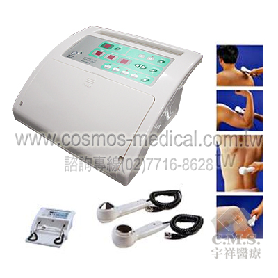 電壓 : AC 110V 50/60Hz 頻率 : 1 MHz 治療頭 : 8.5cm2--1支, 0.8cm2--1支 時間 : 0-30 分鐘 預設程式 : 10 組 (0-9) 自設程式 : 10 組 (U0-U9) 波型 : Con/1:9/2:8/5:5 輸出功率 : 0.2-2W/cm2(10段) 尺寸 : 32LX30WX14.5H/CM 重量 : 約3Kgs